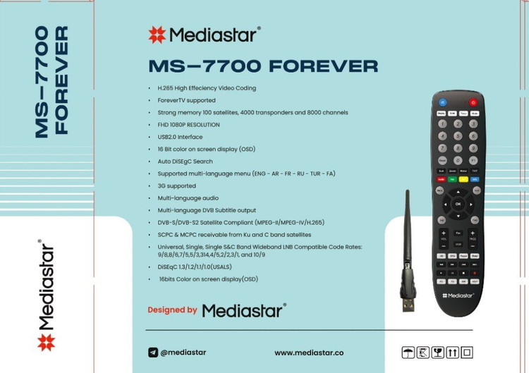 14- دارای یک عدد ریموت کنترل بزرگ و همچنین ساپورت تمامی ریموت کنترلهای مدیا استار
